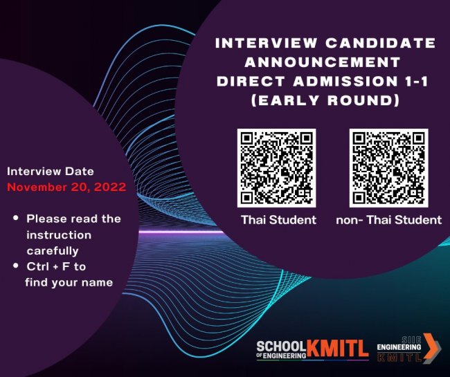 ประกาศรายชื่อ ประกาศผู้สมัครสอบสัมภาษณ์สําหรับผู้เข้ารับตรง 1-1 (รอบต้น)
