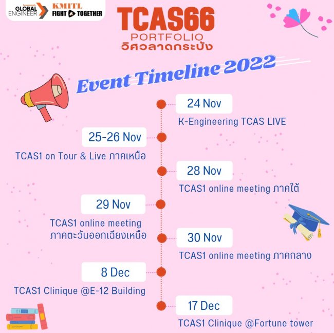ประกาศตาราง “TCAS66 Portfolio วิศวลาดกระบัง 2022” ที่มีทั้งแบบ Online & Onsite