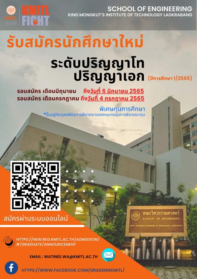 เปิดรับสมัครนักศึกษาระดับปริญญาโท – ปริญญาเอก ภาคเรียนที่ 1 /2565