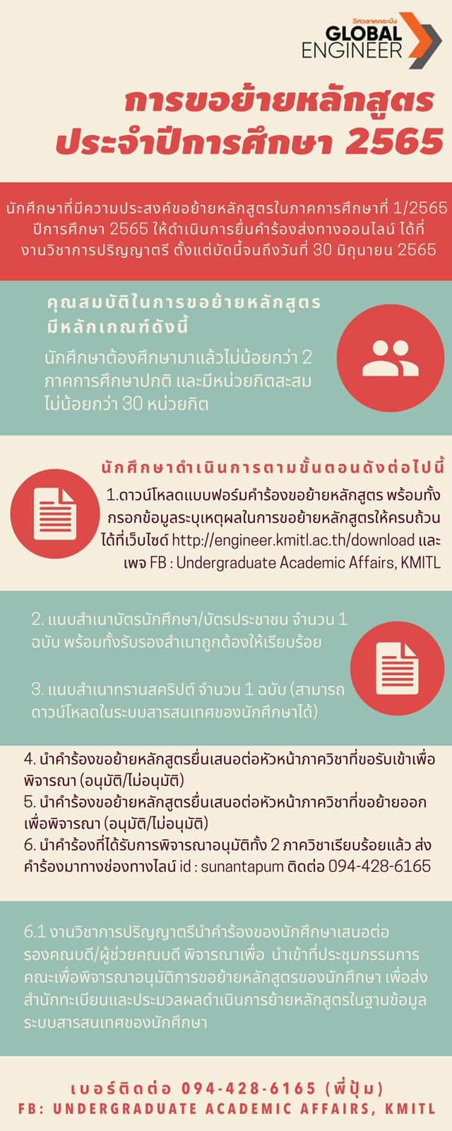 การขอย้ายหลักสูตร ประจำปีการศึกษา 2565