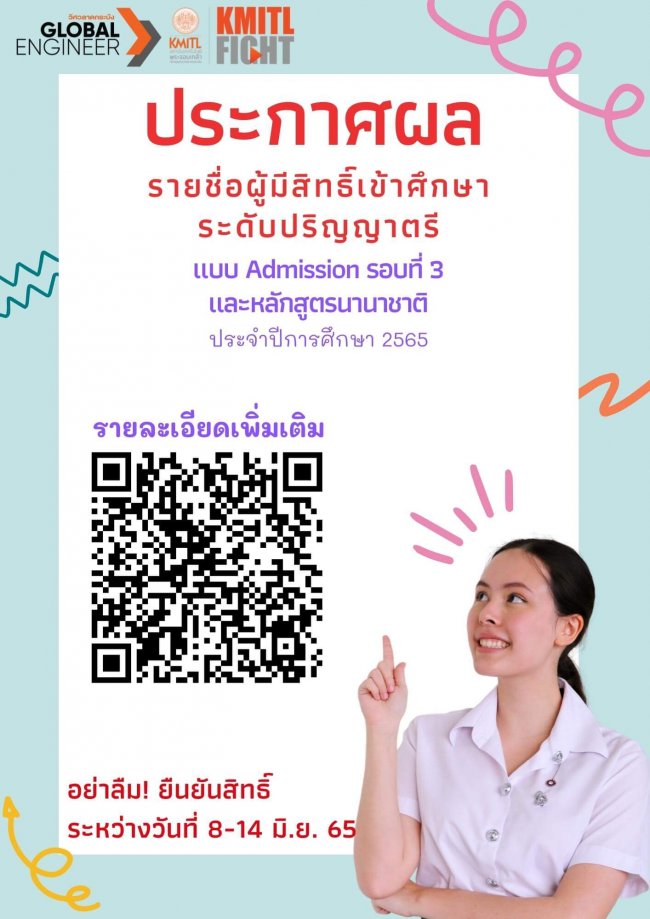 รายชื่อผู้มีสิทธิ์เข้าศึกษาระดับปริญญาตรี แบบ Admission รอบ3