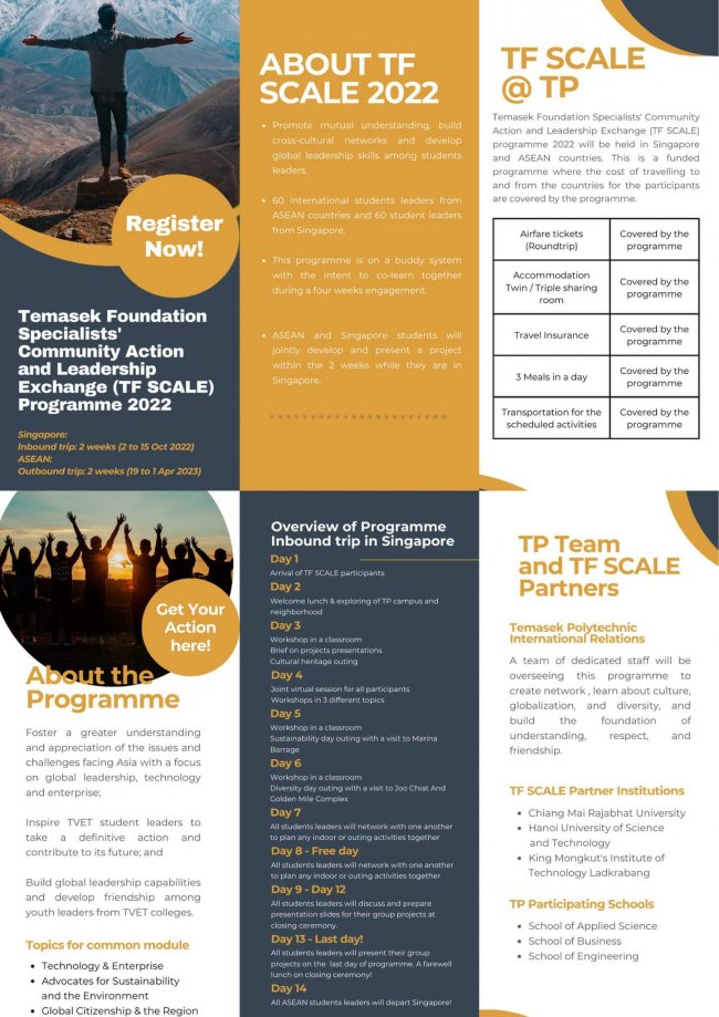 ขอเชิญนักศึกษาเข้าร่วมโครงการ TF SCALE 2022 ร่วมกับ Temasek Polytechnic