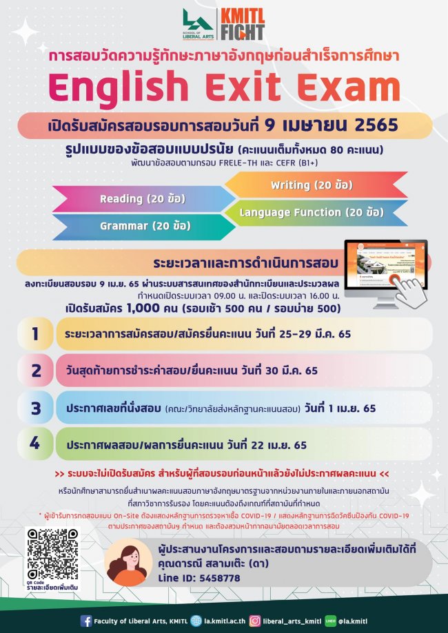 เปิดรับสมัครสอบ English Exit Exam รอบวันที่ 9 เมษายน 2565