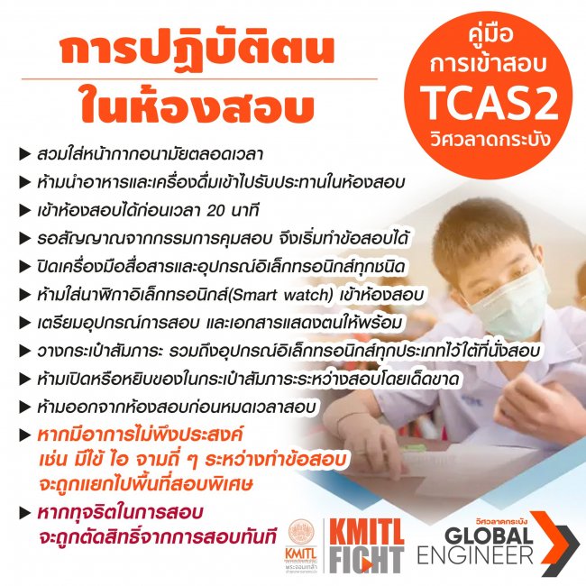 ข้อปฏิบัติสำหรับผู้มีสิทธิ์สอบ TCAS2 รอบโควตา วิศวลาดกระบัง ประจำปีการศึกษา 2565