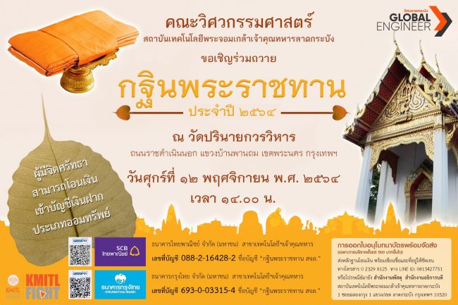 ขอเชิญร่วมถวาย กฐินพระราชทาน ประจำปี 2564 ณ วัดปรินายกวรวิหาร