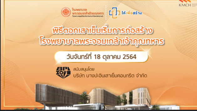 Live พิธีตอกเสาเข็มเริ่มการก่อสร้างโรงพยาบาลพระจอมเกล้าเจ้าคุณทหาร