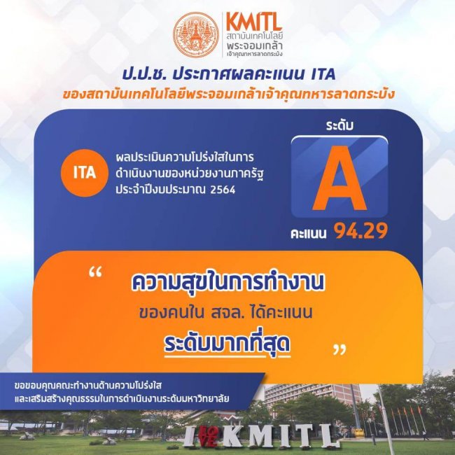 พระจอมเกล้าลาดกระบัง ได้คะแนนระดับ A ในการดำเนินงานของหน่วยงานภาครัฐ (ITA)