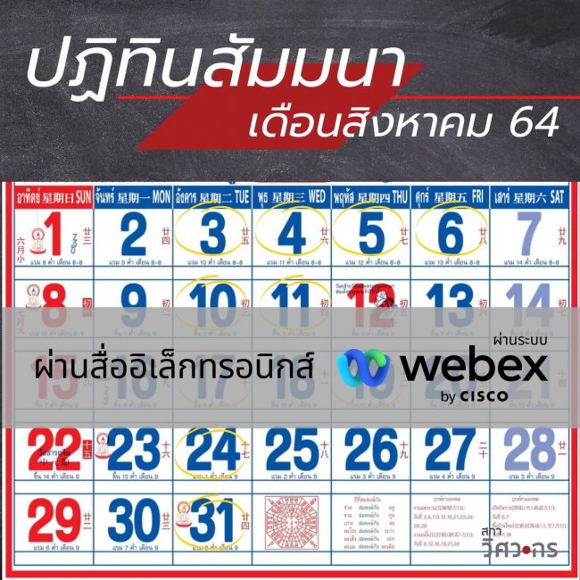 ปฏิทินสัมมนา เดือนสิงหาคม 64 <<ฟรี ผ่านสื่ออิเล็กทรอนิกส์ ระบบ Webex