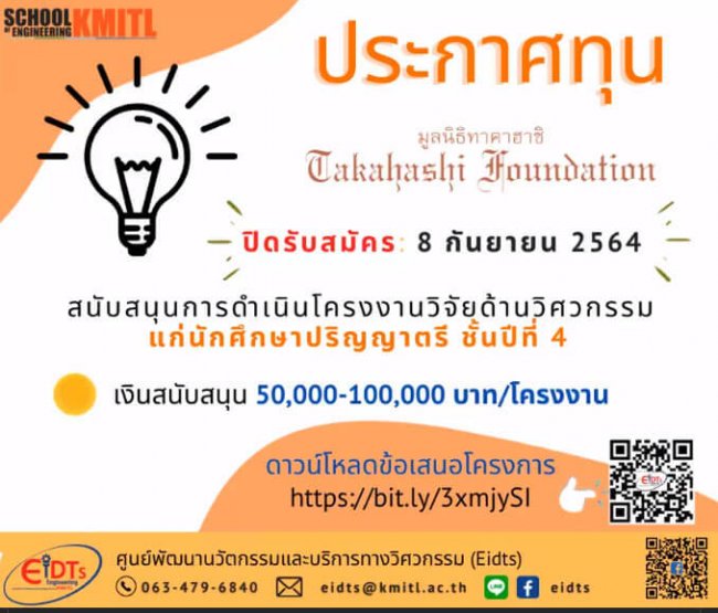 ทุน มูลนิธิทาคาฮาชิ ภายใต้การสนับสนุนโดย กลุ่มบริษัท มินีแบมิตซูมิ (ประเทศไทย)