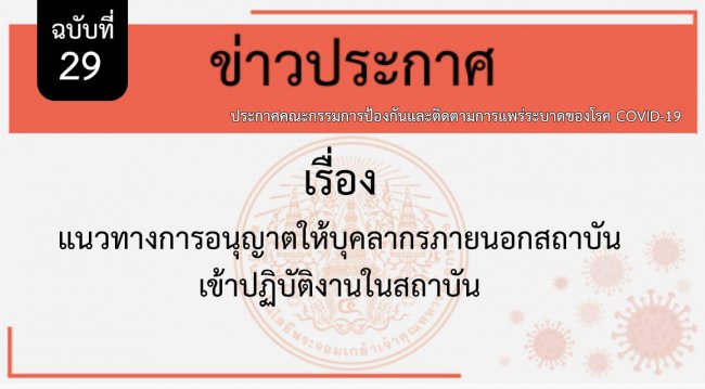 ประกาศคณะกรรมการป้องกันและติดตามการแพร่ระบาดของโรค COVID-19 ฉบับที่ 29