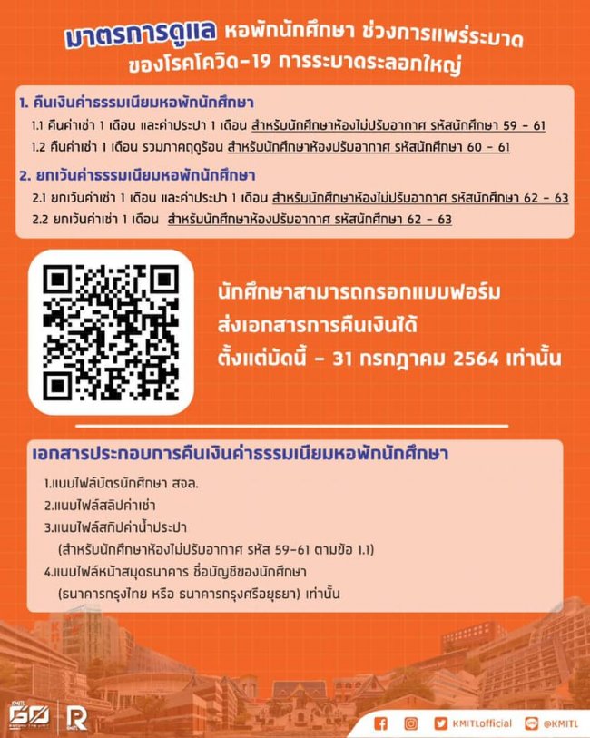 KMITLCare มาตรการช่วยเหลือนักศึกษาหอพัก สจล. (หอใน)