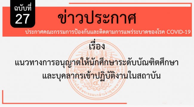 ประกาศคณะกรรมการป้องกันและติดตามการแพร่ระบาดของโรค COVID-19 ฉบับที่ 27
