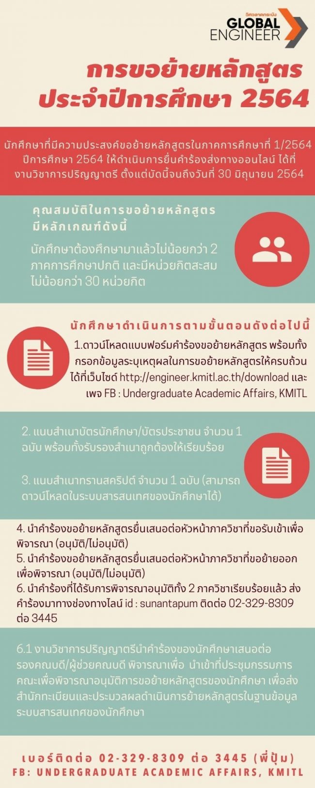 ประกาศ ข้อปฏิบัติในการย้ายหลักสูตร ประจำปีการศึกษา 2564