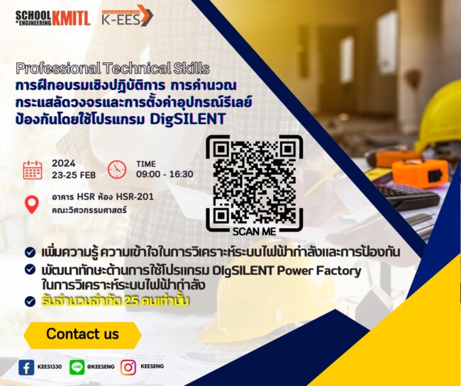 “การฝึกอบรมเชิงปฏิบัติการ การคำนวณกระแสลัดวงจรและตั้งค่าอุปกรณ์รีเลย์ป้องกันโดยใช้โปรแกรม DigSILENT”