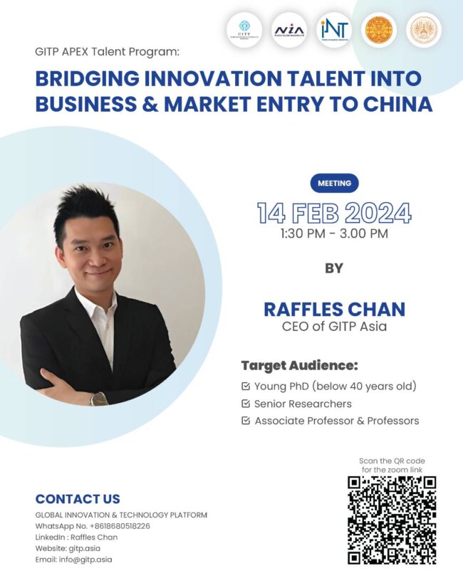 การเชื่อมต่อโอกาสสำหรับผู้เชี่ยวชาญด้านนวัตกรรมสู่โอกาสทางธุรกิจและตลาดจีน