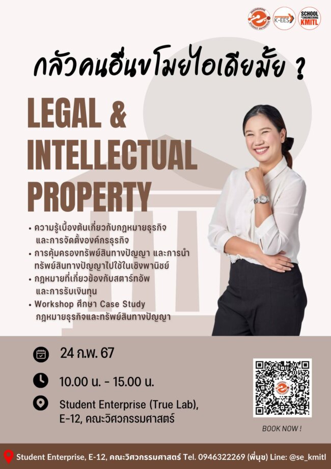 ขอเชิญชวนน้อง ๆ นักศึกษา เข้าร่วมการอบรมเชิงปฏิบัติการ Legal & Intellectual Property