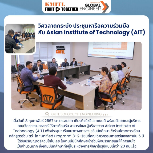 วิศวลาดกระบัง ประชุมหารือความร่วมมือ กับ Asian Institute of Technology (AIT)