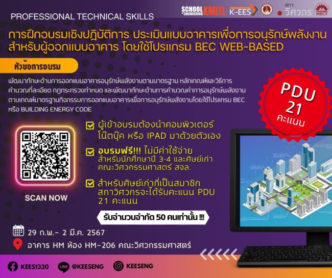 การฝึกอบรมเชิงปฏิบัติการ ประเมินแบบอาคารเพื่อการอนุรักษ์พลังงานสำหรับผู้ออกแบบอาคาร โดยใช้โปรแกรม BEC Web-based
