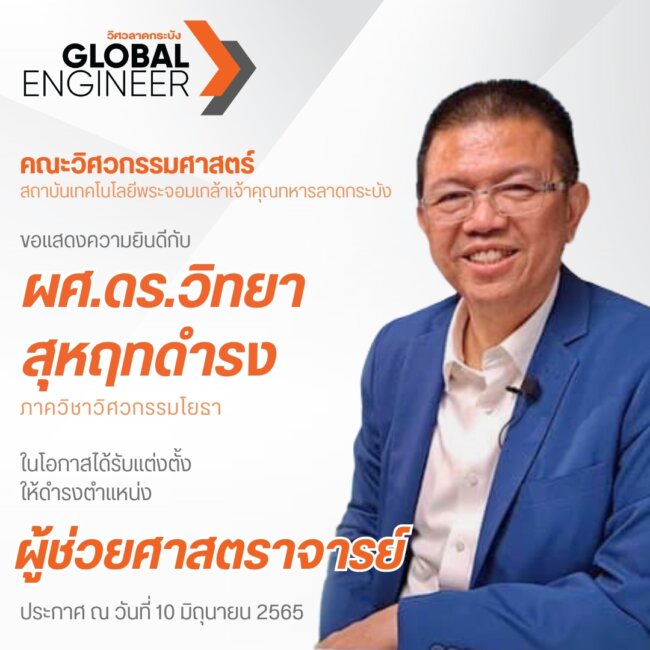 ขอแสดงความยินดีกับ ผู้ช่วยศาสตราจารย์ ดร.วิทยา สุหฤทดำรง