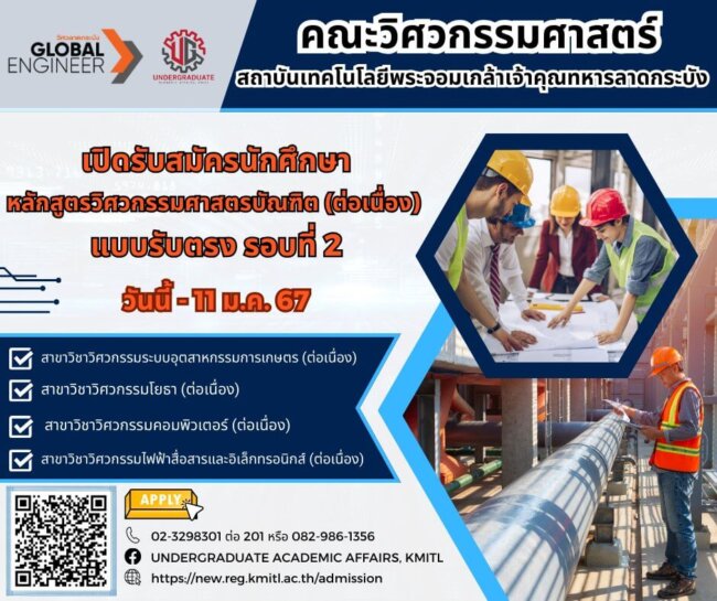 รับเข้าศึกษาต่อระดับปริญญาตรี คณะวิศวกรรมศาสตร์ สจล.