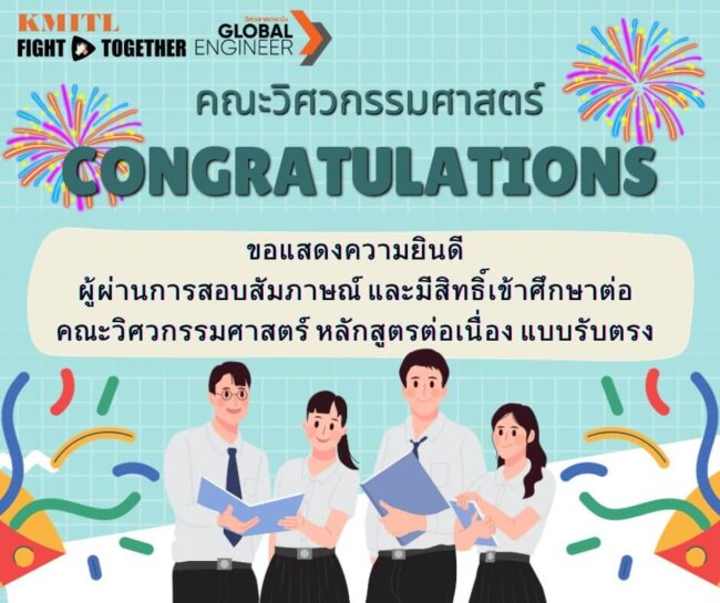 ประกาศรายชื่อผู้ผ่านสัมภาษณ์ และมีสิทธิ์เข้าศึกษาคณะวิศวกรรมศาสตร์ หลักสูตรต่อเนื่อง (รับตรง)