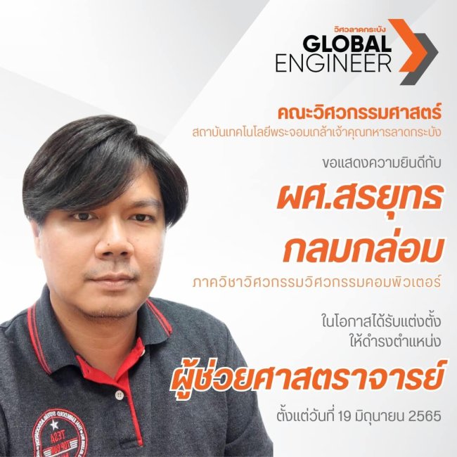 ขอแสดงความยินดีกับ ผู้ช่วยศาสตราจารย์ สรยุทธ กลมกล่อม ให้ดำรงตำแหน่ง “ผู้ช่วยศาสตราจารย์”