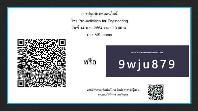 การปฐมนิเทศน์ออนไลน์ วิชา Pre-Activities for Engineering