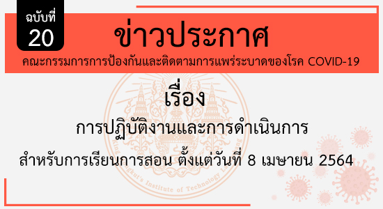ประกาศคณะกรรมการป้องกันฯ COVID-19 ฉบับที่ 20 ตั้งแต่วันที่ 8 เม.ย. 2564