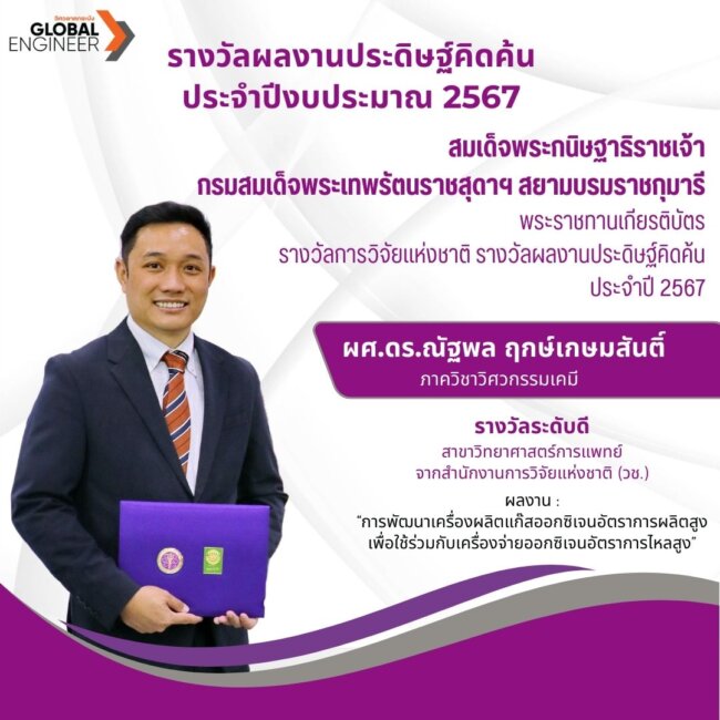อาจารย์ภาควิชาวิศวกรรมเคมี วิศวลาดกระบัง คว้ารางวัลการวิจัยแห่งชาติ : รางวัลผลงานประดิษฐ์คิดค้น
