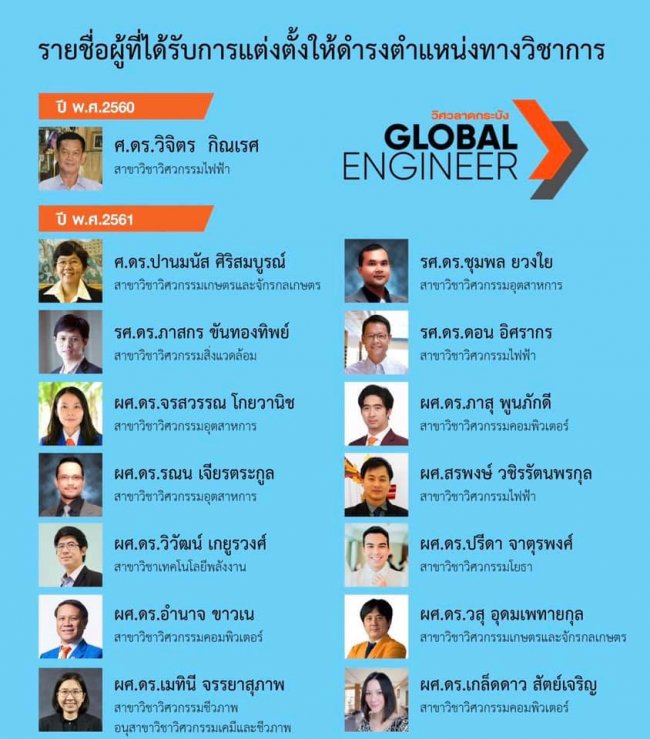 ขอแสดงความยินดีกับคณาจารย์วิศวฯ ดำรงตำแหน่งทางวิชาการ ตั้งแต่ ปีพ.ศ.2560 – 2563