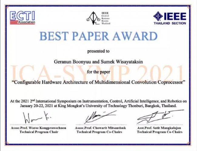 นักศึกษาปริญญาโท ภาควิชาอิเล็กทรอนิกส์ ได้รับรางวัล Best Paper Award