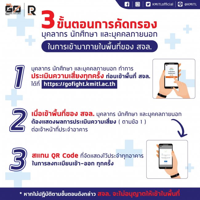 3 ขั้นตอนการคัดกรองอย่างง่ายๆ ในการเข้าพื้นที่ สจล.