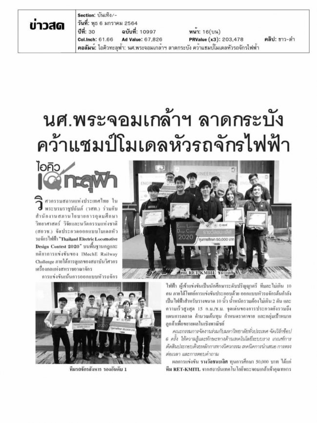 ไอคิวทะลุฟ้า : นศ.พระจอมเกล้าฯ คว้าแชมป์โมเตลหัวรถจักรไฟฟ้า
