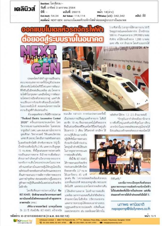 ไอคิวทะลุฟ้า : นศ.พระจอมเกล้าฯ คว้าแชมป์โมเดลหัวรถจักรไฟฟ้า