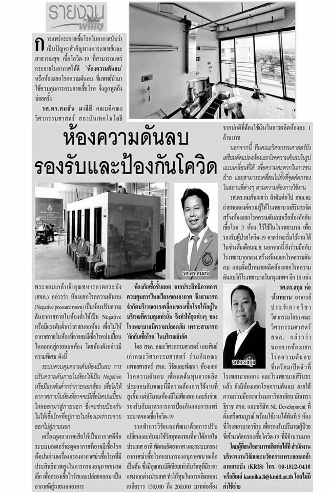 ห้องแยกโรคความดันลบ”คืออะไร? ทีมวิศวะฯ สจล.แจกแจงให้ฟัง