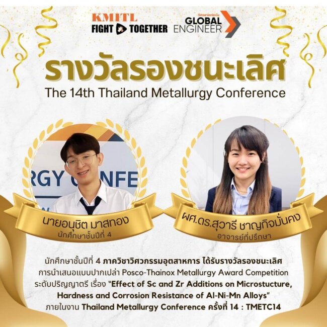 นศ.วิศวลาดกระบัง คว้ารางวัลรองชนะเลิศ จาก The 14th Thailand Metallurgy Conference