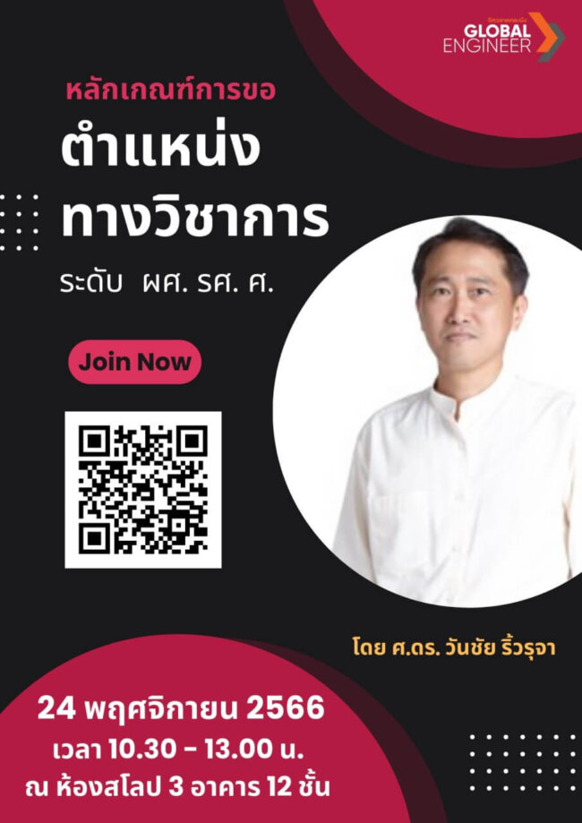 คณะวิศวกรรมศาสตร์ จัดบรรยาย “หลักเกณฑ์การขอตำแหน่งทางวิชาการ ระดับ ผศ. รศ. ศ. ตามเกณฑ์ พ.ศ. 2564”