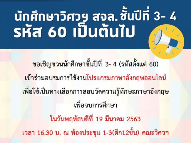 ประกาศแจ้ง นักศึกษา วิศวฯ ชั้นปีที่ 3 – 4