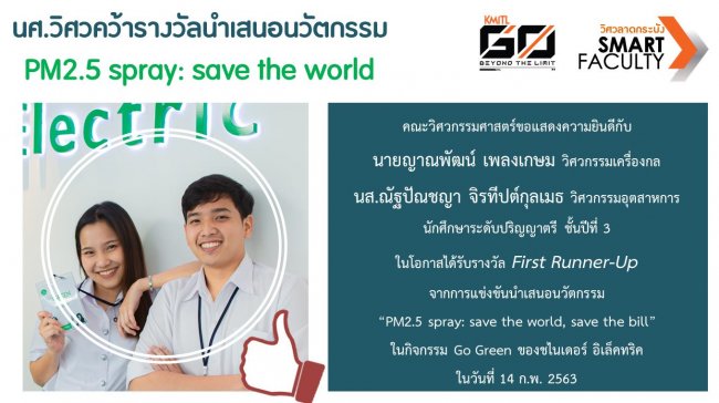 นักศึกษาวิศวสร้างชื่อเสียง ในโอกาสคว้ารางวัลการนำเสนอ นวัตกรรม PM2.5 spray: save the world