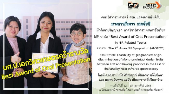 นักศึกษาปริญญาเอกวิศวเกษตร คว้ารางวัล Best Award of Oral Presentation