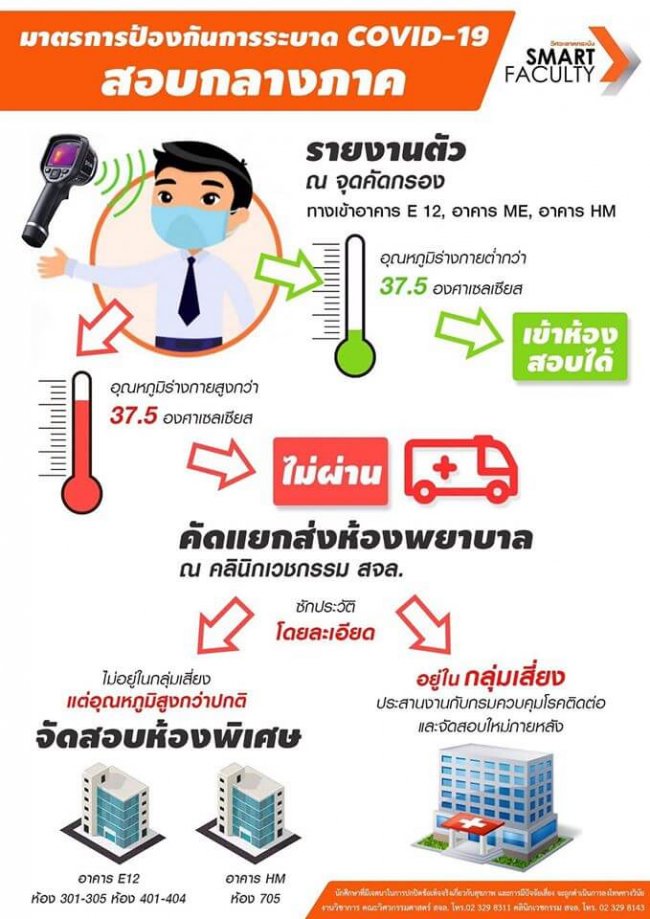 มาตรการป้องกันการระบาดของไวรัส COVID-19 ในช่วงสอบกลางภาค ของวิศวลาดกระบัง