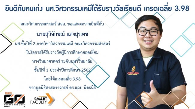 นักศึกษาวิศวกรรมเคมีได้รับรางวัลเรียนดี