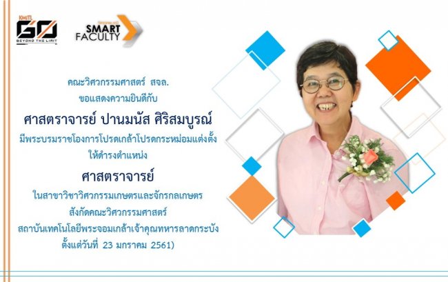 ขอแสดงความยินดีกับ ศาสตราจารย์ ปานมนัส ศิริสมบูรณ์ ดำรงตำแหน่ง “ศาสตราจารย์” ในสาขาวิชาวิศวกรรมเกษตร