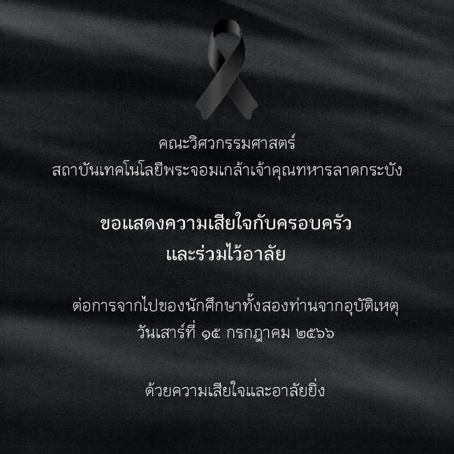 ขอแสดงความเสียใจกับครอบครัวและร่วมไว้อาลัยต่อการจากไปของนักศึกษาทั้งสองท่านจากอุบัติเหตุ