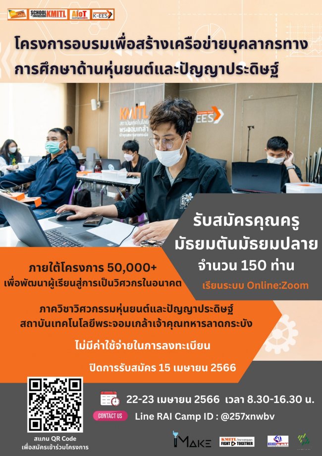 รับสมัครครูมัธยมต้น ครูมัธยมปลาย ครูชมรม Robot ครูห้องเรียนวิทย์ และคุณครูที่มีความสนใจในการพัฒนา Skill