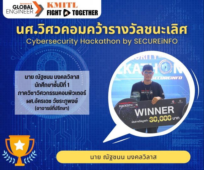 นศ.วิศวคอมคว้ารางวัลชนะเลิศจากการเฟ้นหาสุดยอดฝีมือด้าน Cybersecurity ระดับอุดมศึกษา Cybersecurity Hackathon