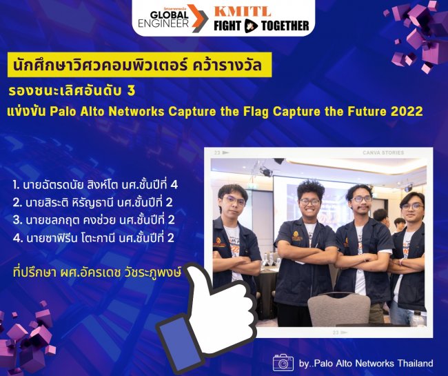 นักศึกษาวิศวคอมพิวเตอร์ คว้ารางวัลรองชนะเลิศอันดับ 3 จากการแข่งขัน Palo Alto Networks Capture 2022