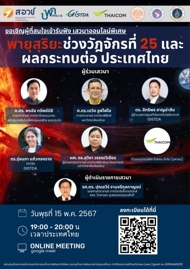เสวนาพิเศษ (ออนไลน) หัวข้อ “พายุสุริยะช่วงวัฏจักรที่ 25 และผลกระทบต่อประเทศไทย”