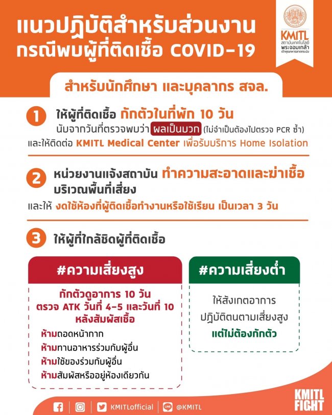 แนวปฏิบัติกรณีพบผู้ที่ติดเชื้อ COVID-19 ใน สจล.