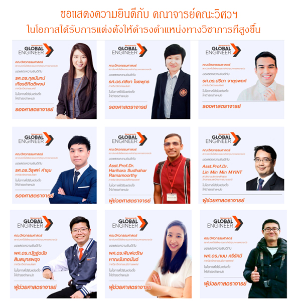 ขอแสดงความยินดีกับ คณาจารย์คณะวิศวฯ ในโอกาสได้รับการแต่งตั้งให้ดำรงตำแหน่งทางวิชาการที่สูงขึ้น